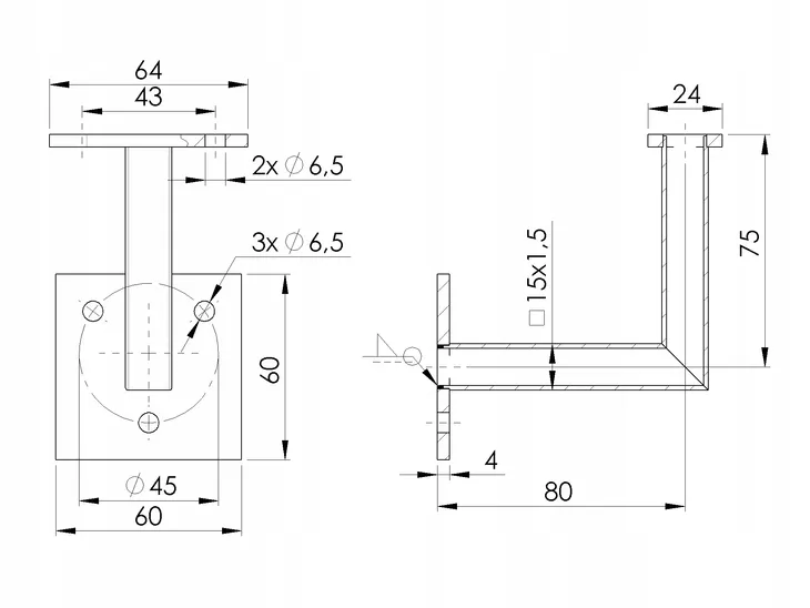 PODPORA PORĘCZY NA ŚCIANE - STAL NIERDZEWNA AISI 304 SATYNA
