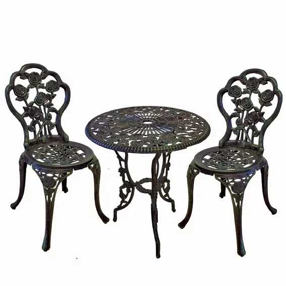 ZESTAW MEBLI OGRODOWYCH STÓŁ Z DWOMA KRZESŁAMI - CZARNE ALUMINIUM